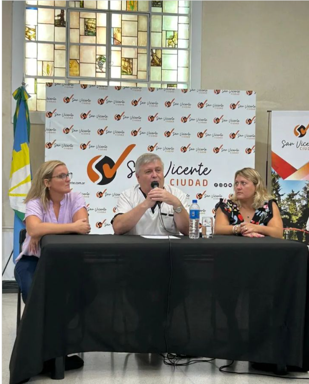 La Secretaria de Gestión Verónica Giussani junto a la Subsecretaria de Salud Desarrollo Social y Equidad Jorgelina Giussani, acompañaron al director del SAMCo San Vicente, Dr. Sergio Boretto.