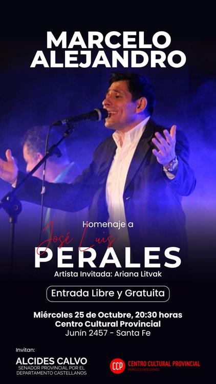 En el Centro Cultural Provincial, ubicado en calle Junín 2457 de la ciudad de Santa Fe,  se realizará el próximo miércoles 25 de Octubre a las 20:30 horas, un show musical en tributo a Jose Luis Perales realizado por el artista rafaelino Marcelo Alejandro Farías, una propuesta que cuenta con el acompañamiento del senador provincial Alcides Calvo y el ministerio de Cultura de la provincia, una propuesta con entrada libre y gratuita formulada para transmitir el sentimiento de la música realista a todo el público, en el desarrollo de este tributo interpreta las más destacadas canciones  buscando ese lado humano que el propio autor expresa cada una de sus obras, su compromiso hacia la vida, la libertad, los niños desamparados, y principalmente hacia la familia, con canciones dedicadas a su esposa, a sus hijos y a sus padres, siendo en cada obra, "El amor", principal protagonista.